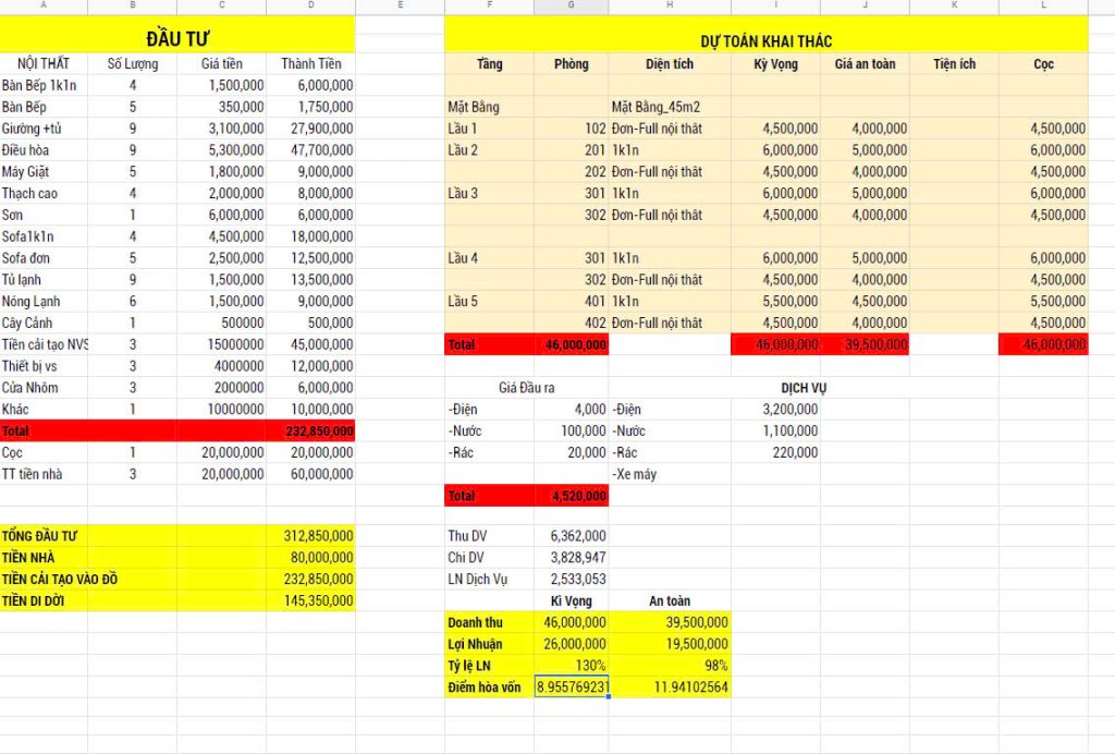 - Chi phí thuê gốc: 40 triệu/tháng.